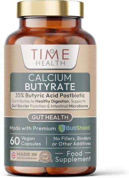 Calcium Butyrate – Made with Premium ButiShield – >35% Butyric Acid – Gut & Microbiome Support – 60 Capsules