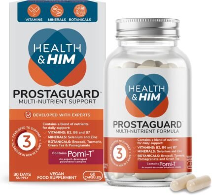 Health & Him Prostate Supplements for Men – with Pomi-T Polyphenol Blend, Turmeric, Selenium & Zinc, Vegan & Gluten Free – 1 Month Supply, 60 Capsules