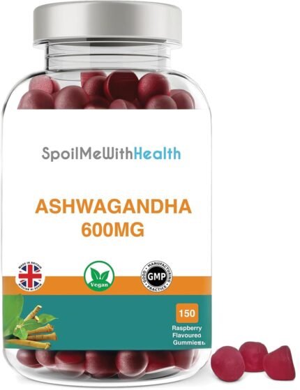 Ashwagandha Gummies: 600mg (150 Count) – Raspberry Flavour – Sleep, Calm, Focus & Stress Support for Adults