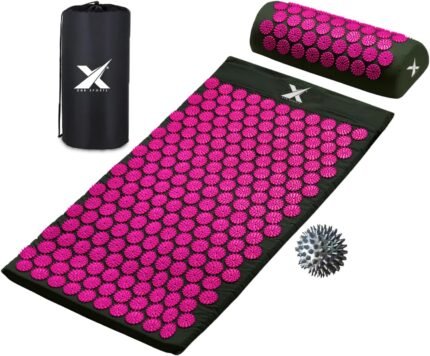 Xn8 Acupressure Mat & Pillow, Spiky Acupuncture Mat for Anxiety, Stress Relief, Back Pain, Muscle Relaxation & Recovery, Portable Reflexology Matt with Carry Bag for Men & Women, Black-Pink