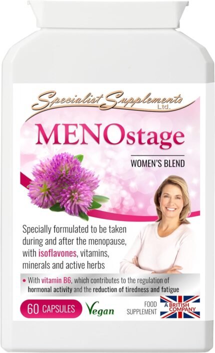 Meno Botanicals Supplement – Natural Support for Perimenopause, Menopause, and Post-Menopause. Contains Ashwagandha, Sage, SOYA Isoflavones, and Essential B Vitamins – 30-Day Supply
