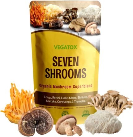 Seven Mushroom Powder | Medicinal Mushrooms Blend with Chaga, Reishi, Lion’s Mane, Cordyceps | 100% Pure Organic Shroom Powder| Vegatox | 100g