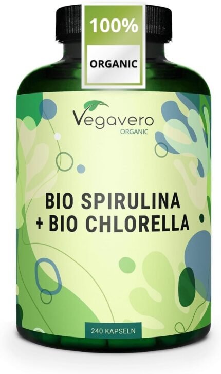 Vegavero Organic Spirulina and Chlorella Capsules High Strength | 2000 mg Per Serving | 240 Capsules | NO Additives | Pure Powder | Vegan