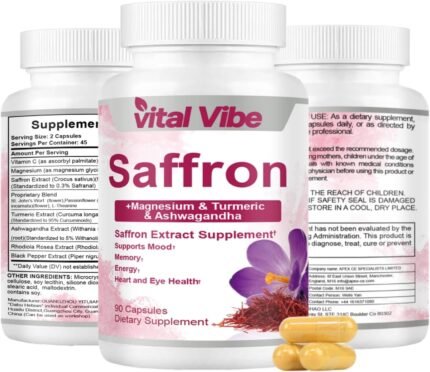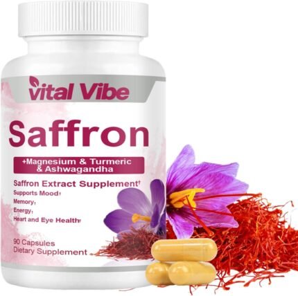 Saffron Supplements 88.5 mg 90 Capsules, 100% Pure Saffron Extract Capsules with Magnesium, Turmeric & Ashwagandha, Supports Mood, Memory, Energy, Heart & Eye Health, Vegan
