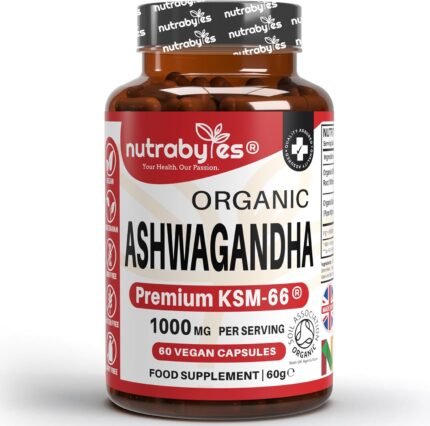 Nutrabytes Organic Ashwagandha 1000mg Premium KSM-66 Supplement, 60 Vegan Capsules | High Strength with 5% Withanolides & Black Pepper | Supports Cognitive Function, Energy & Calm | 1 Month Supply