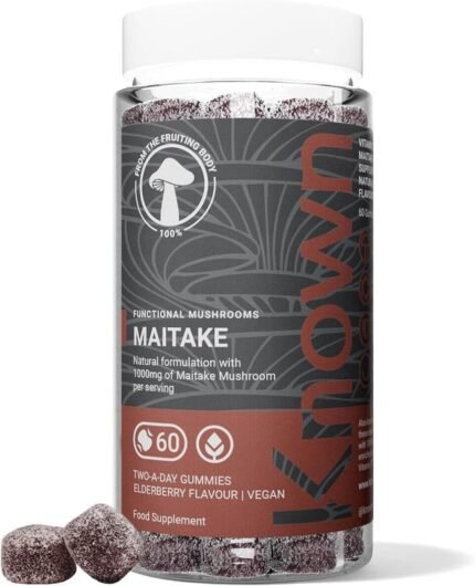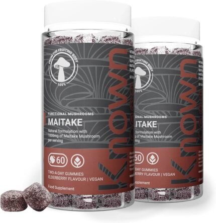 Known Tasty Maitake Gummies – 1000mg Maitake Mushroom with Vitamin D3 – Immune Support – Natural Elderberry Flavour – 60 Vegan Gummies, 2 Month Supply
