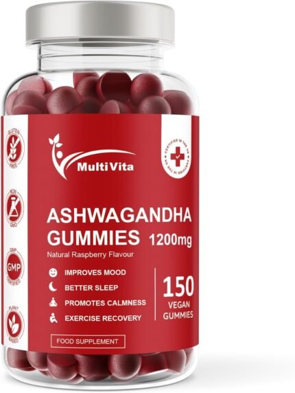 Ashwagandha Gummies 1200mg – 150 Vegan Gummies 5% Withanolides Natural Raspberry Flavour – High Strength Withania Somnifera – Ashwagandha Root Supplement – Gelatine & GMO Free
