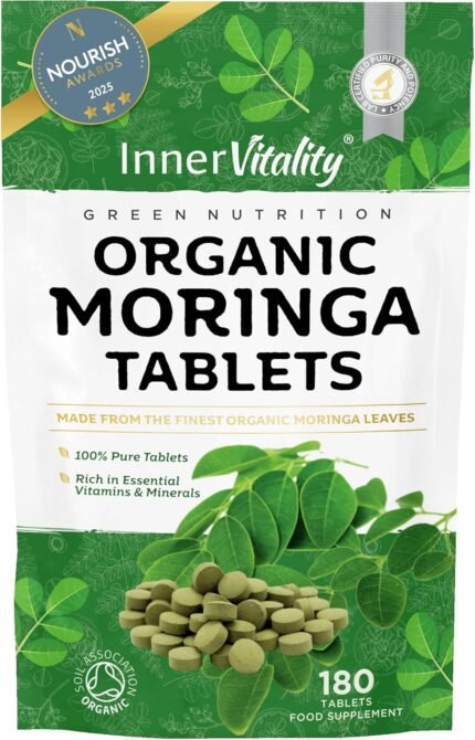 Organic Moringa Tablets 180x Award Winning with Pure Natural Moringa Leaf 2-Month Supply, Easier to Swallow Than Moringa Capsules & Powder, Rich in Essential Vitamins & Minerals by Inner Vitality