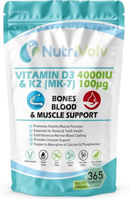 Vitamin D3 4000 iu & Vitamin K2 MK7 100μg – 1 Year Supply, 365 Easy-Swallow Vitamin D3 K2 Tablets, 1-A-Day High Strength Vegetarian D3 and K2 Vitamin Supplements, UK Made Vitamin D Tablets