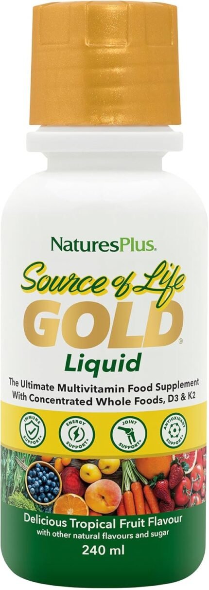 NaturesPlus Source of Life Gold Liquid 236ml – High Potency Food- Based Multivitamin and Mineral with Superfoods – Energy, Immune, Bones, Hydration – Vegetarian, Gluten Free