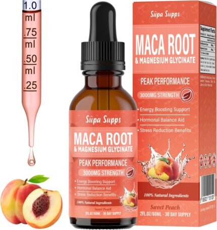Maca Root & Magnesium Glycinate Liquid Drops 60ml – High Strength 2000mg Maca + 1000mg Magnesium per 2ml – Reduction of Tiredness & Fatigue, Normal Muscle Function, Nervous System Support