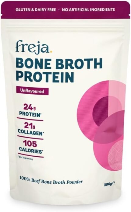 Freja Bone Broth Powder | 100% Natural Collagen & Protein Powder | Pure Beef, Grass-Fed | Amino Acids & Minerals | Nutrition for Healthy Gut, Skin, Hair & Nails | 300g (15 Servings)