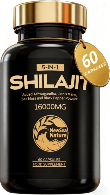NewSeaNature Shilajit Capsules – 16000MG Premium Shilajit for Men – 5-in-1 with Ashwagandha 2000mg,Seamoss 2000mg,Hericium erinaceus 500mg,Black Pepper 35mg- 60 Capsules