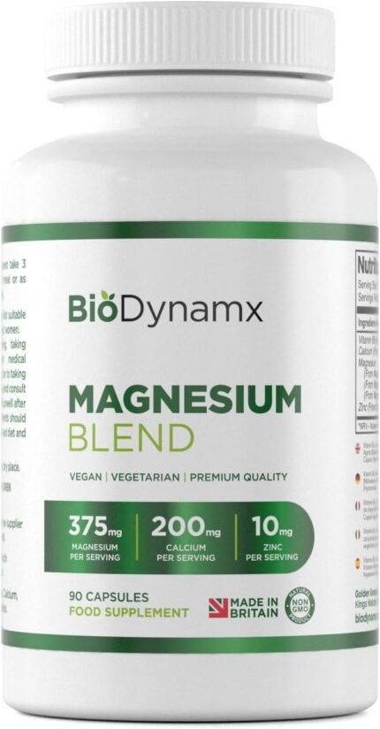 Magnesium 3‑in‑1 Complex 375 mg – Glycinate, Malate & Citrate – 90 High Strength Vegan Capsules (30‑Day Supply) | Energy, Recovery & Sleep Support | UK Made, GMP Certified & Allergen Free
