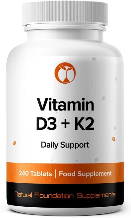 Vitamin D3 4000IU + K2 100mcg MK7 240 Vegetarian Tablets D3 K2 Supplement Non-GMO Made in The UK (240, Vitamin D3 + K2)