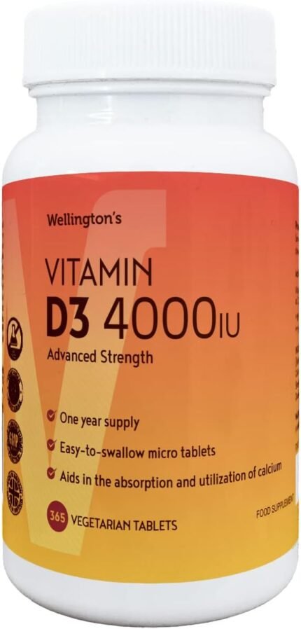 Wellington’s Premium 4000iu Vitamin D3, High-Potency, Easy-to-Swallow, 365 Micro Vegetarian Tablets for Year-Round Immune Support, Enhanced Bone Health, Non-GMO, Gluten-Free, Suitable for All Ages