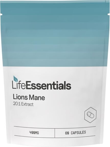 Life Essentials Lions Mane Mushroom – High Strength Lions Mane 8000mg (400mg 20:1 Extract), 60 Premium Nootropic Supplement Capsules for Cognitive Support and Brain Function