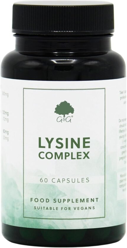 L-Lysine Complex 400mg – with Vitamin C & Zinc – 60 Vegan Capsules – Non-GMO, Made in The UK by G&G Vitamins