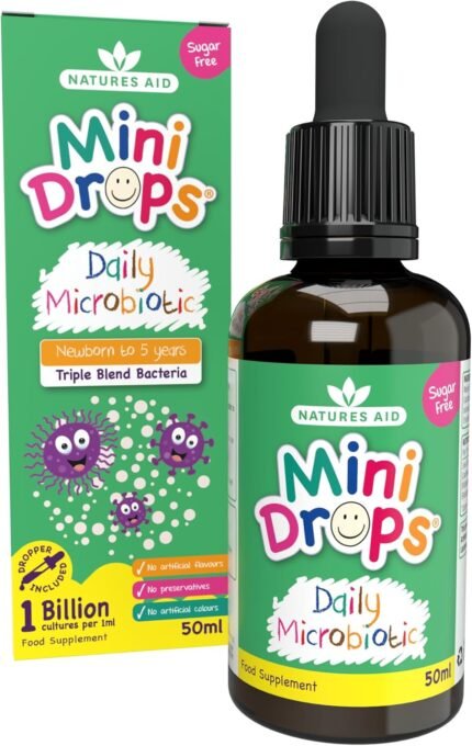 Natures Aid Mini Drops Daily Microbiotic 50ml Liquid Drops – Gentle Gut Bacteria Support for Babies & Toddlers 0-5 Years, 1 Billion CFU Live Cultures Per Serving – Sugar-Free, Gluten-Free, Dairy-Free