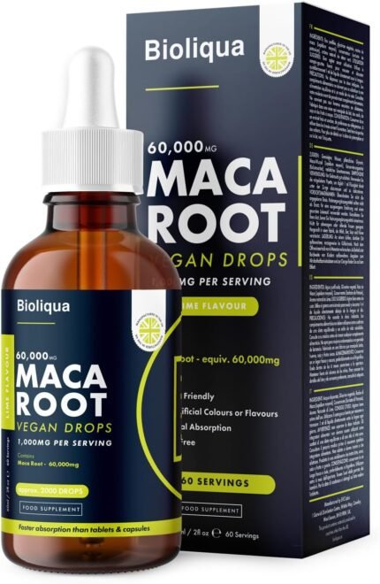 Maca Root Supplement Liquid Drops – High Strength of 60,000mg per 60ml Bottle at 4X Concentration – Vegan – 2 Month Supply of Premium Maca Root Extract – 60 Servings – Made in UK by Balance