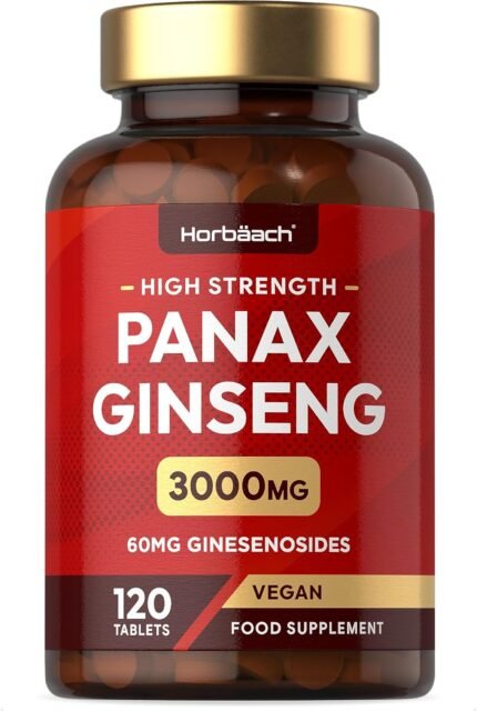 Panax Ginseng High Strength | 3000mg Korean Ginseng Tablets | 120 Vegan Tablets | Providing 60mg Ginsenosides | by Horbaach
