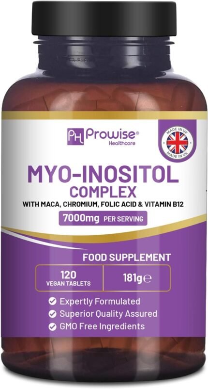 Myo-Inositol Complex 120 Vegan Tablets 7000mg per Serving with Black Maca Root, Chromium, Folic Acid, and Vitamin B12 | Hormonal Balance for Women, Women PCOS Supplement | Premium Quality by Prowise