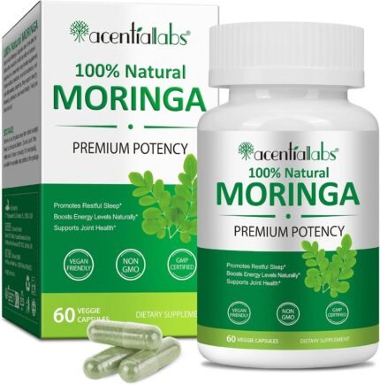 Moringa Leaf Capsules 800mg, Moringa Powder Capsules Supplement Supports Energy, Joint & Immunity & Gut Health, Overall Vitality, Pure Vegan Extract Non-GMO (60pcs)