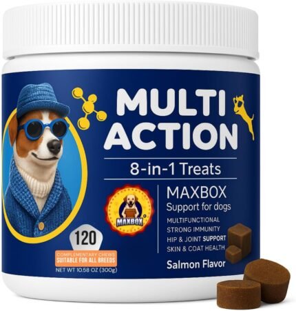 Dog Vitamins with DHA, Probiotics & CoQ10, Dog Supplements for 8-in-1 Multivitamin Treats, Complete Daily Wellness Supports Brain, Heart, Skin, Coat, Immunity, Digestion, Joints & Energy