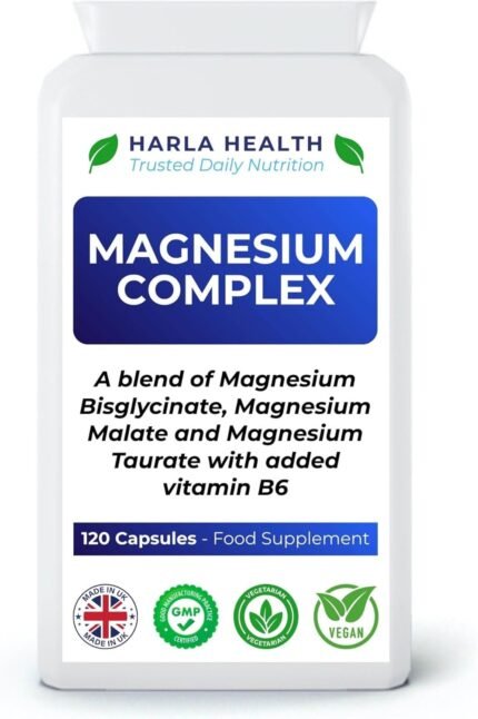 Magnesium Complex – Bisglycinate, Malate & Taurate with Vitamin B6 – 120 Vegan Capsules – High Absorption Magnesium Supplement for Energy, Muscle Function & Sleep Support
