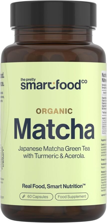 Green Tea Extract Capsules – Organic Matcha Green Tea Tablets – Boosted with Turmeric, Acerola Cherry & Black Pepper – 1360MG Complex – Green Tea Supplement – 60 Capsules – UK Made