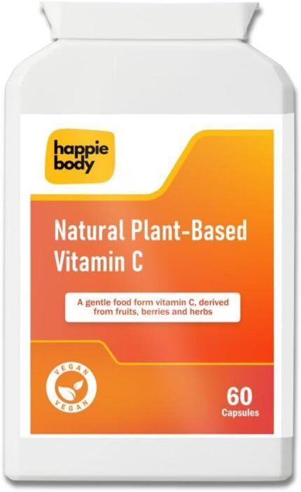 Natural Food Vitamin C 60 Capsules – Immune Support & Fatigue Reduction – Containing Acerola Cherry, Rosehip, Blackcurrant and Elderberry – Gentle & Non-Acidic – Optimum Absorption – UK Manufactured