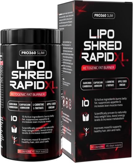 Lipro Shred Rapid XL Fast-Acting Weight Loss Fat Burner & Appetite Suppressant – Triple Action with Apple Cider Vinegar, Garcinia Cambogia, Green Tea – Boosts Energy, Burns Fat, Increases Metabolism