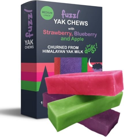 Box of 3 Apple, Blueberry, Strawberry Yak Chews for Dogs | 225g | Natural Himalayan Cheese Dog Treats | Long-Lasting, Grain-Free, Vitamin & Antioxidant-Rich Dental Chews