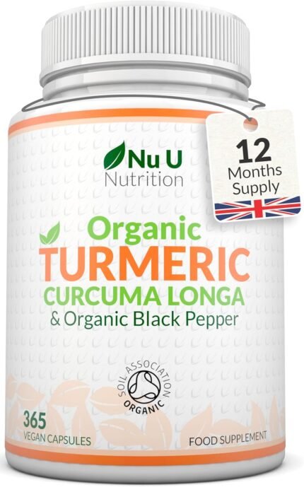 Organic Turmeric Curcumin and Black Pepper 600mg – 365 Vegan Capsules – 1 Year Supply – Soil Association Certified – High Strength Tumeric Supplement – Made in The UK – Nu U Nutrition