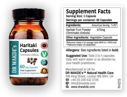 DR WAKDE’S Haritaki Capsules (Terminalia chebula/Hirda) | 60 Veg Caps | Ayurvedic Supplement | Vegan | 100% Herbal | Quantity Discounts