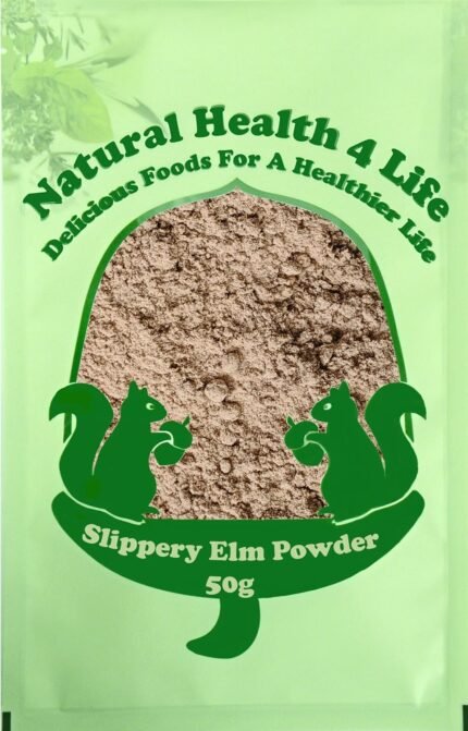 Natural Health 4 Life 100% Pure Inner Bark Slippery Elm Powder – Support Gut Health, Vegan – 50g Slippery Elm Powder Bag