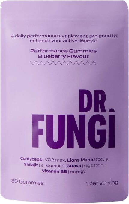 Lion’s Mane & Cordyceps Mushroom Gummies – Vegan, Natural & Sugar Free with Vitamin B5 – Focus & Memory Supplement – 1 Month’s Supply – 3,000mg per Serving – 30 Gummies – Blueberry Flavour
