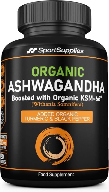 Organic Ashwagandha Capsules 1200mg – Boosted with 1000mg of Organic KSM-66 with 5% Withanolides (from 100mg Extract Ratio 10:1) – Added Turmeric 100mg and Black Pepper – UK Manufactured