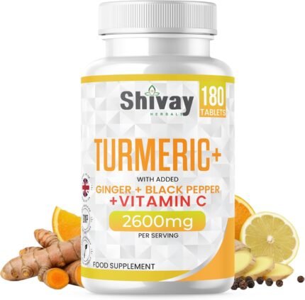 Turmeric Tablets 2600mg with Black Pepper & Ginger Boosted with Vitamin C | 180 High Strength Curcumin Supplements – 3 Month Supply Vegan Active Curcumin Made in The UK by Shivay Herbals