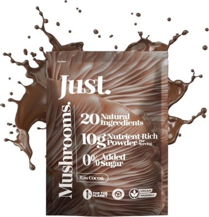 JUST Mushroom Powder 300g, Hot Chocolate Blend with Ashwagandha, Lion’s Mane, Chaga, Cordyceps & Vitamin B Complex, Focus Supplement and Immunity Booster