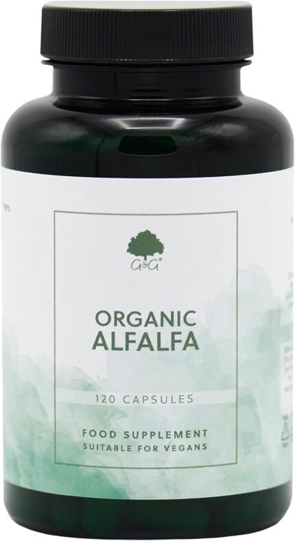Organic Alfalfa Capsules 500mg – Botanical Rich in Vitamins, Minerals and Other Nutrients – 120 Vegan Capsules – Non-GMO, Made in The UK by G&G Vitamins