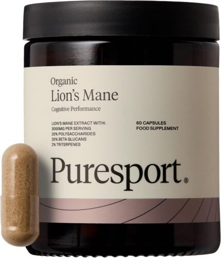 Puresport Lion’s Mane Supplement (60 Capsules) | Lion’s Mane Mushroom with 20% Polysaccharides | High Strength | Brain Focus, Energy and Memory | Vegan Friendly