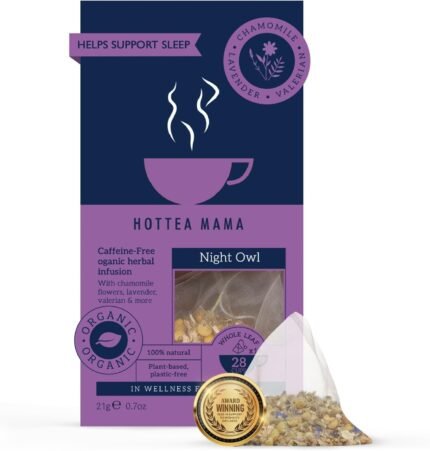 HOTTEA MAMA | Night Owl | Organic | Sleep Support Tea | Caffeine-Free | Postpartum & Breastfeeding Support | 14 Whole Leaf Biodegradable Bags (28 Cups Of Tea)