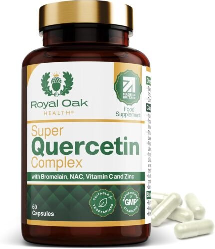 Super 500mg Quercetin Complex with Bromelain, NAC, Vitamin C & Zinc. High Strength Quercetin Supplement with 250mg N-Acetyl-L-Cysteine. UK Made 60 Capsules