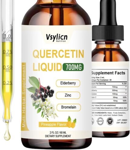 Quercetin & Bromelain Supplement – 700mg Quercetin High Absorption Liquid Drops – w/Elderberry, Zinc & Vitamin C – Anti-inflammatory, Antioxidant and Immune System – 2 fl oz (60 mL)