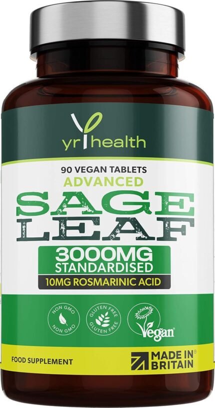 Sage Tablets 3000mg High Strength – 90 Vegan Tablets not Capsules – Standardised 10mg Rosmarinic Acid – Made in The UK by YrHealth
