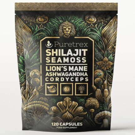 Shilajit Seamoss Capsules with Lion’s Mane, Ashwagandha, and Cordyceps – 120 Vegan Capsules for Energy, Focus, and Wellness
