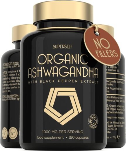 Organic Ashwagandha High Strength – 1000mg Ashwaganda 120 Capsules – Natural Support for Calm & Balance – Pure Root Powder with Black Pepper – Enhanced Absorption – Soil Association Organic Certified