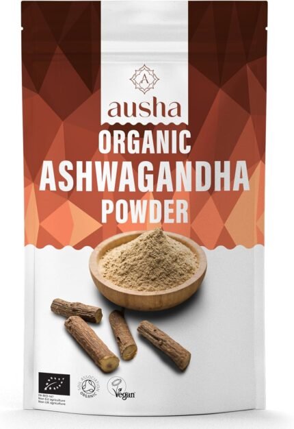 Ausha Organic Ashwagandha Powder 100g High Strength – UK Certified Organic by Soil Association – Stress & Anxiety Relief, Energy, Sleep Aid – Whole Ashwagandha Root Used