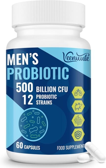 500 Billion CFU Probiotics for Men, 12 Diverse Strains Probiotics for Gut Health with Cranberry, Turmeric, Goji, for Digestive & Immune Health, Shelf Stable (60 Count (Pack of 1))